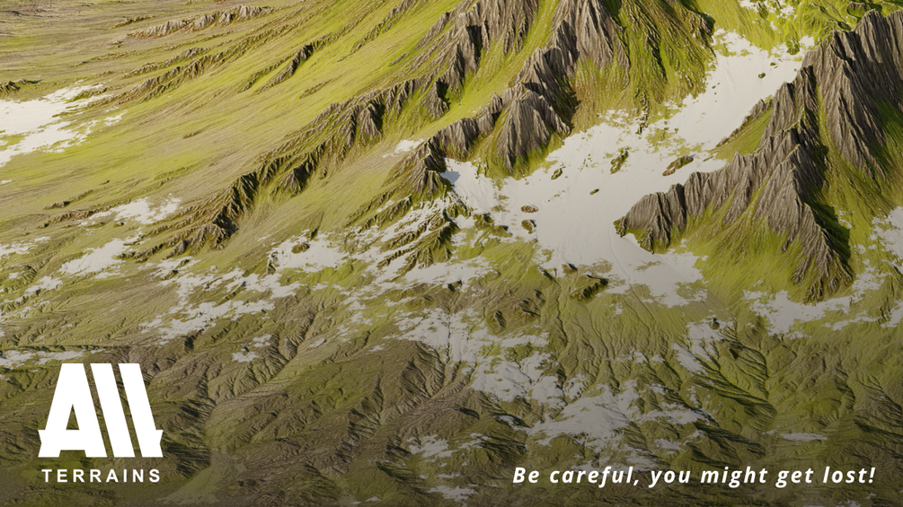 AAA Terrains is a growing library of high quality terrains, which will include mountains, islands, canyons, slopes, deserts and plains or flat lands. These terrains can be used in any 3D program that supports height maps and color textures. Unreal Engine, Blender, 3ds Max and others.